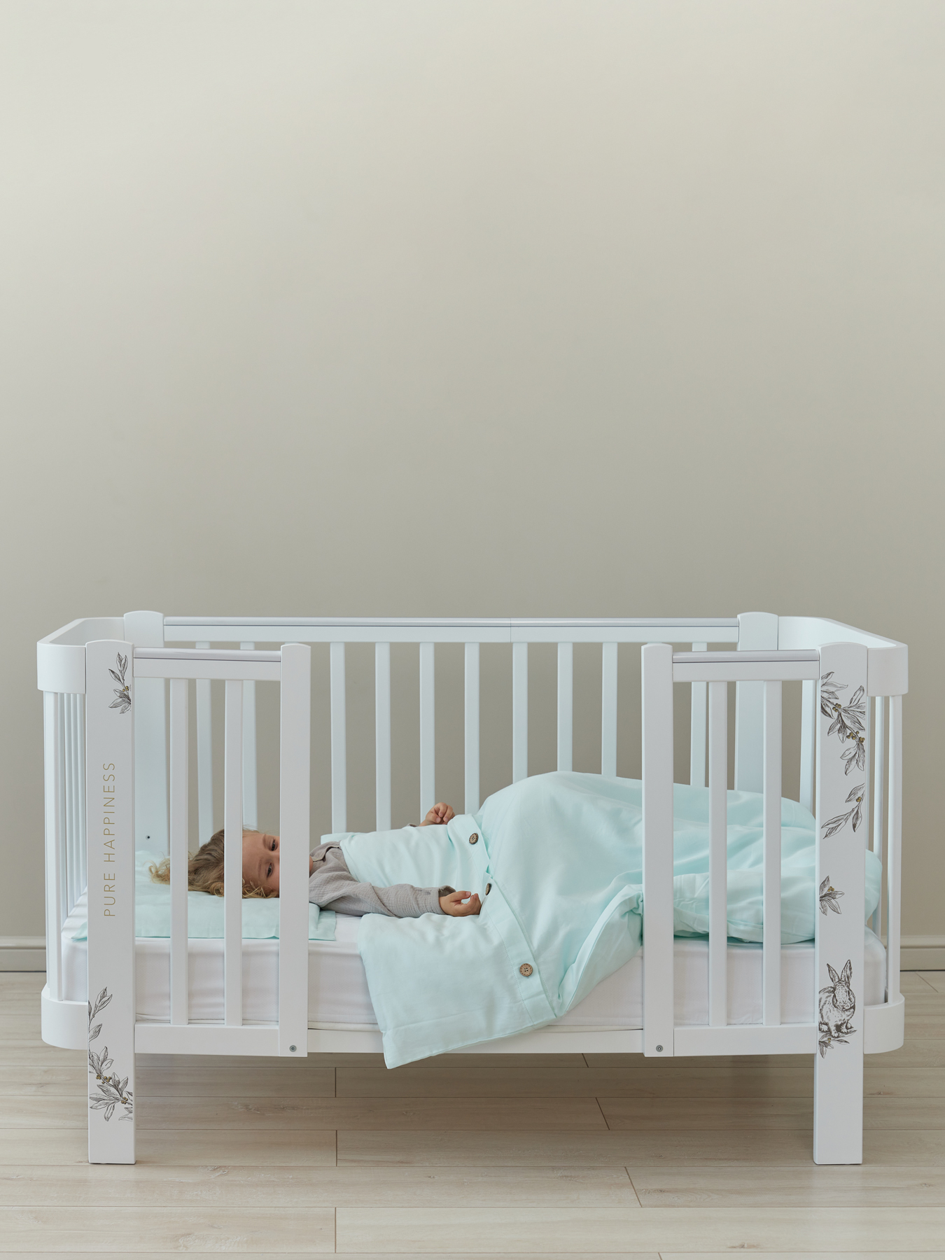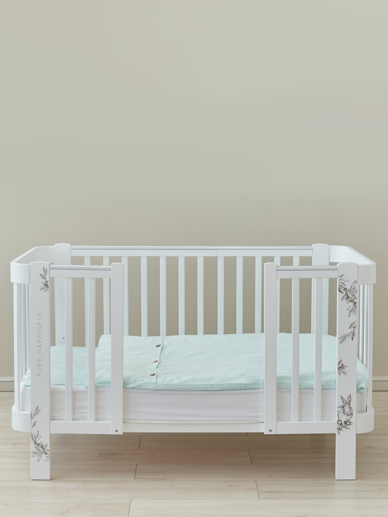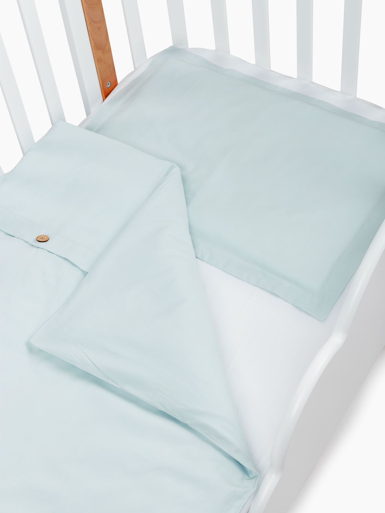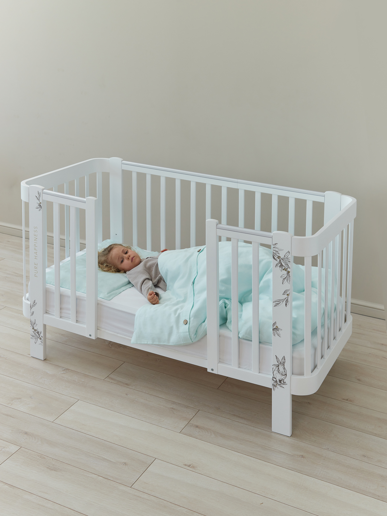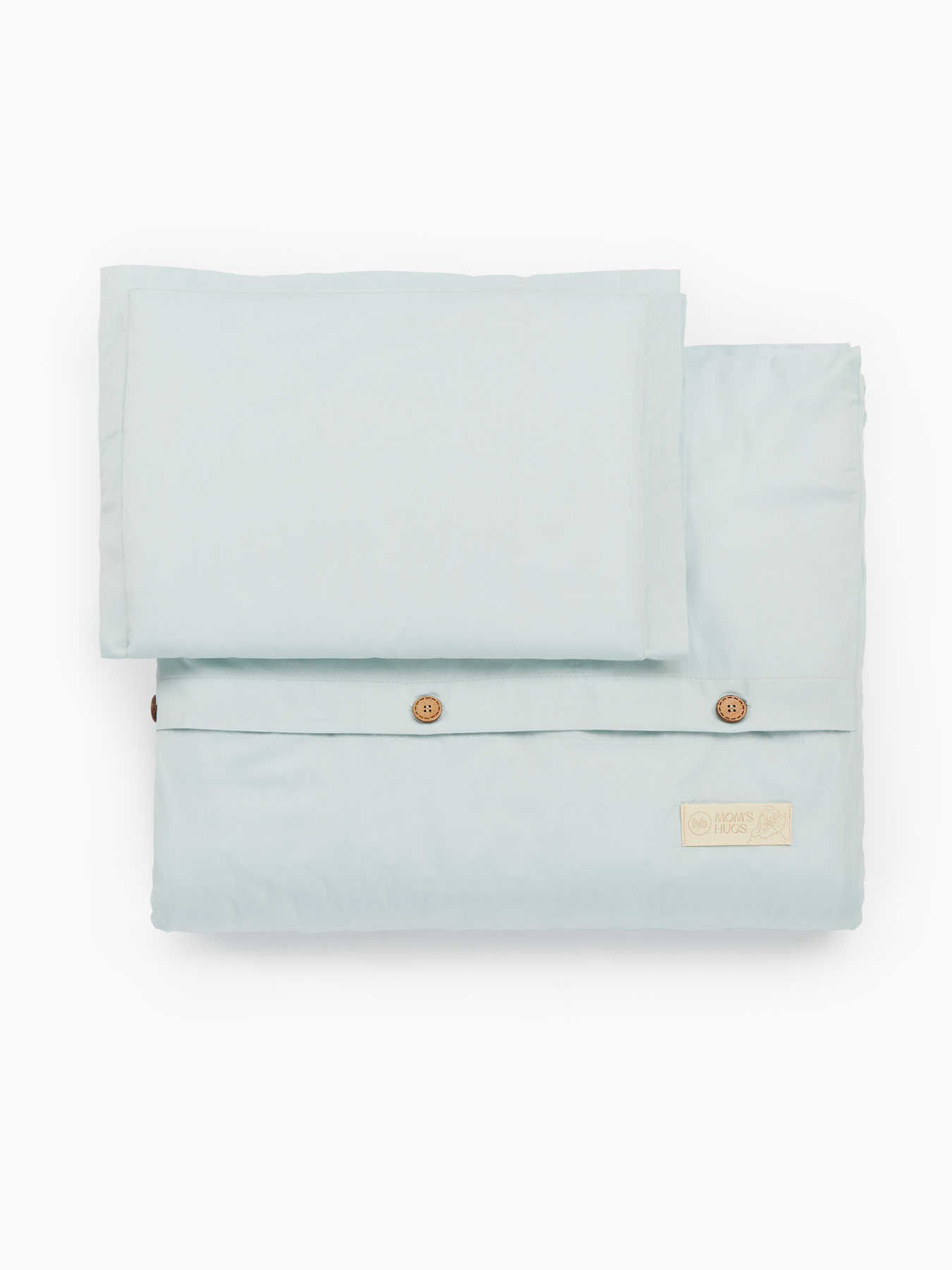 The bed linen is made of satin, which is based on 100% cotton in a plain weave, so the linen is super durable and super soft. The hypoallergenic material breathes and wicks away moisture well. The set includes a pillowcase and duvet cover. The duvet cover is fastened with buttons – it is convenient to tuck in the blanket, which will not come out during use. The laconic design will fit perfectly into the interior of a children’s room.