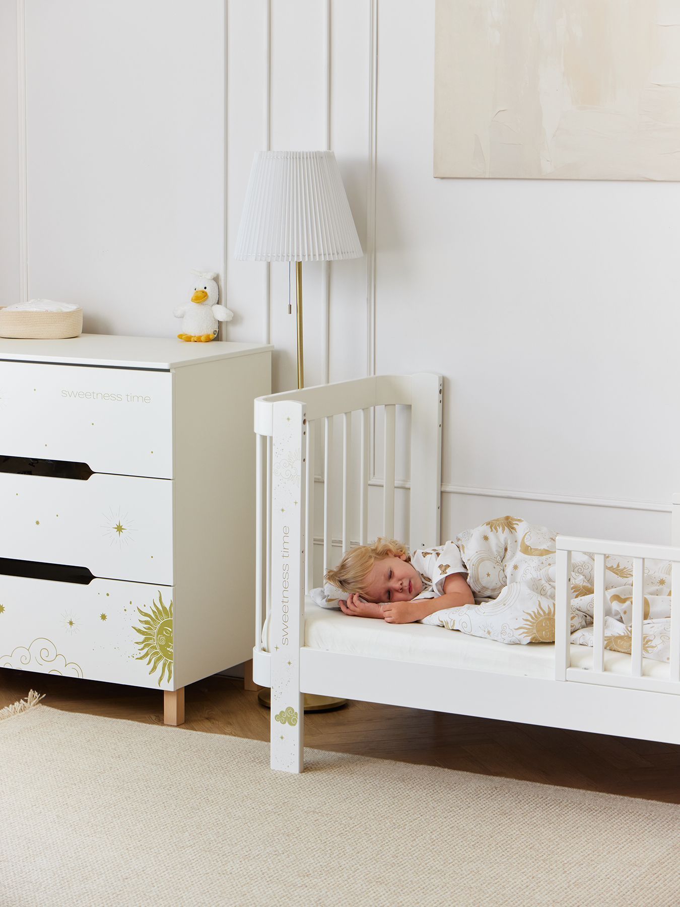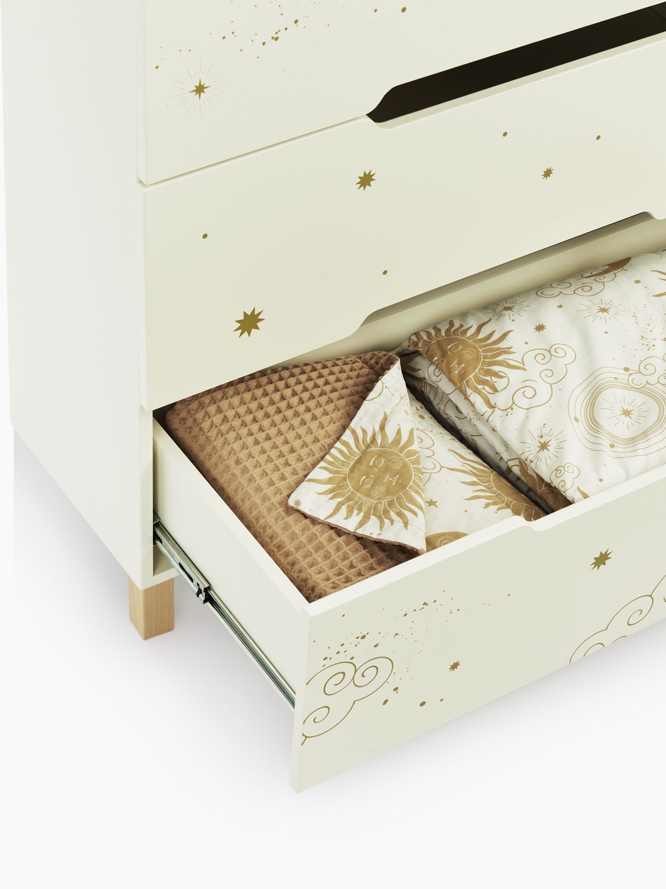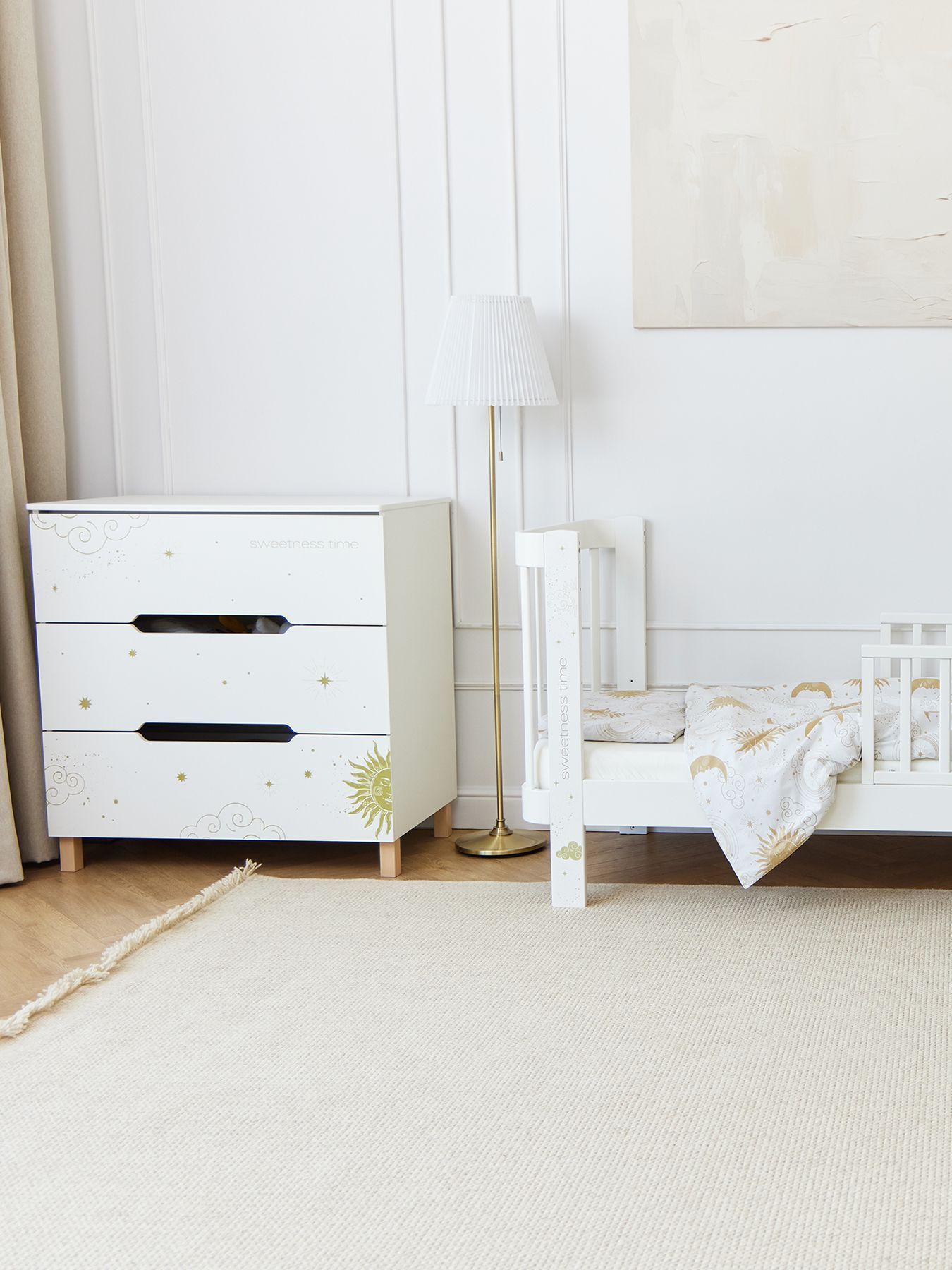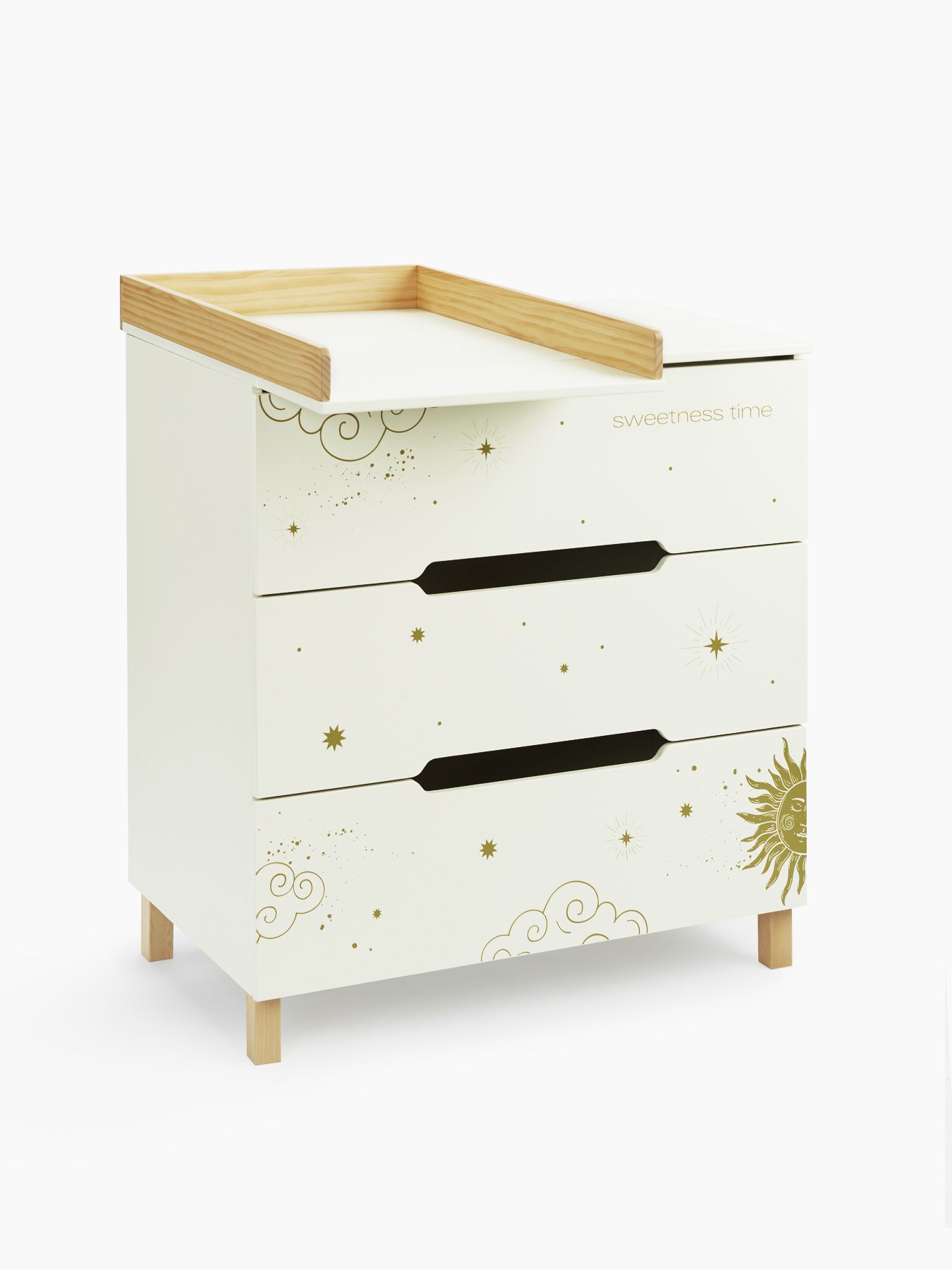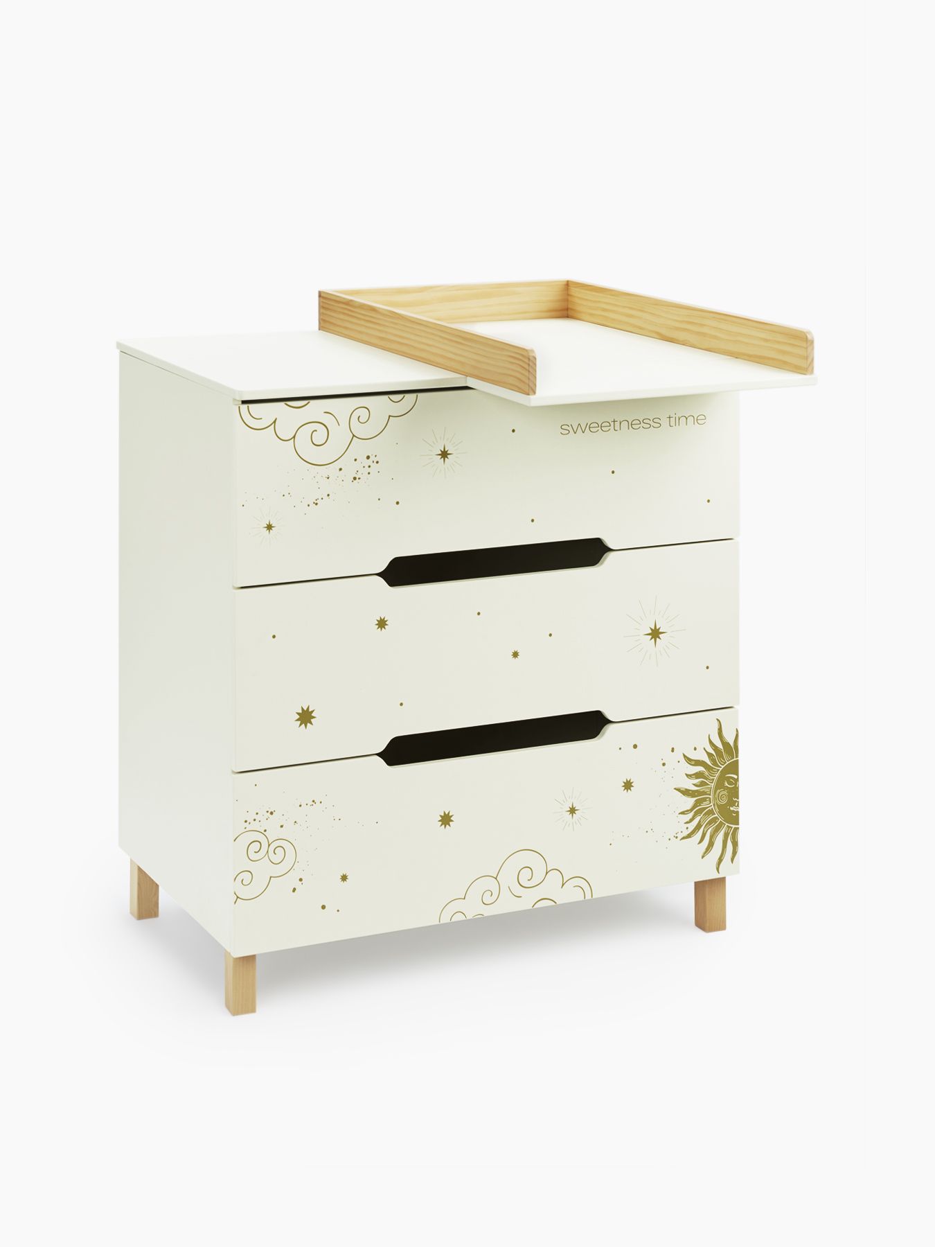The Fioki chest of drawers will become an important part of your children’s room. Spacious drawers will provide storage for all the necessary things for the baby: care products, diapers, clothes and bedding. The drawers open easily without disturbing the child’s sleep, and the legs made of natural wood give the chest of drawers additional stability. The removable changing table makes caring for your baby even easier and more convenient, and its sides provide additional safety.