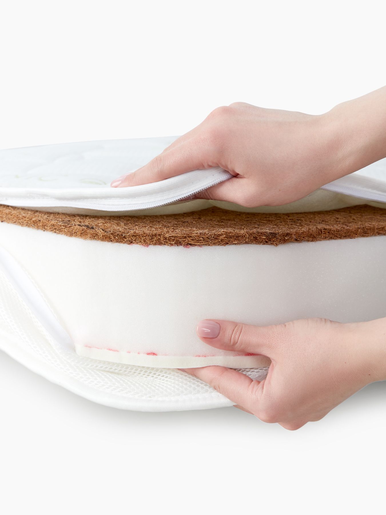 The Happy Baby mattress is ideal for babies from birth and meets all the requirements for the proper development and healthy sleep of a child: it is hard, without springs, made of high-quality materials and has an optimal thickness of 110 mm. The model is two-sided. One of the surfaces is covered with a layer of coconut coir for the maximum orthopedic effect required by a newborn (thickness 10 mm, hardness 4 out of 5). The second is a layer of natural latex. Natural elastic material will give the child special comfort and has an anatomical effect due to the point distribution of the load. We recommend that children after one year sleep on this side (layer 10 mm, hardness 3 out of 5). The mattress is based on 90 mm highly elastic polyurethane foam. It has a porous structure, providing good air circulation and a healthy microclimate for sleep. It has high point elasticity and supports the child’s body well without sagging. The mattress is designed for Happy Baby cribs 140×70 cm.