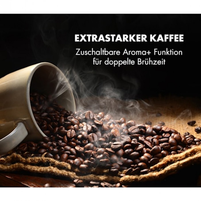 The Klarstein Aromatica X coffee maker will give you the incomparable pleasure of aromatic coffee without any foreign aftertaste. This effect is guaranteed by a permanent “golden filter” – a new technology that has already become popular in Europe. Another feature of the coffee maker is the built-in coffee grinder. With 3 grind settings from extra fine to coarse, you have the opportunity to adjust the grind level to suit your preferences. Thus, one device can make coffee from both bean coffee and already ground coffee. The compact, futuristic-looking stainless steel device has other benefits that enhance your coffee enjoyment: the glass carafe heats up in up to 40 minutes from the heating plate.