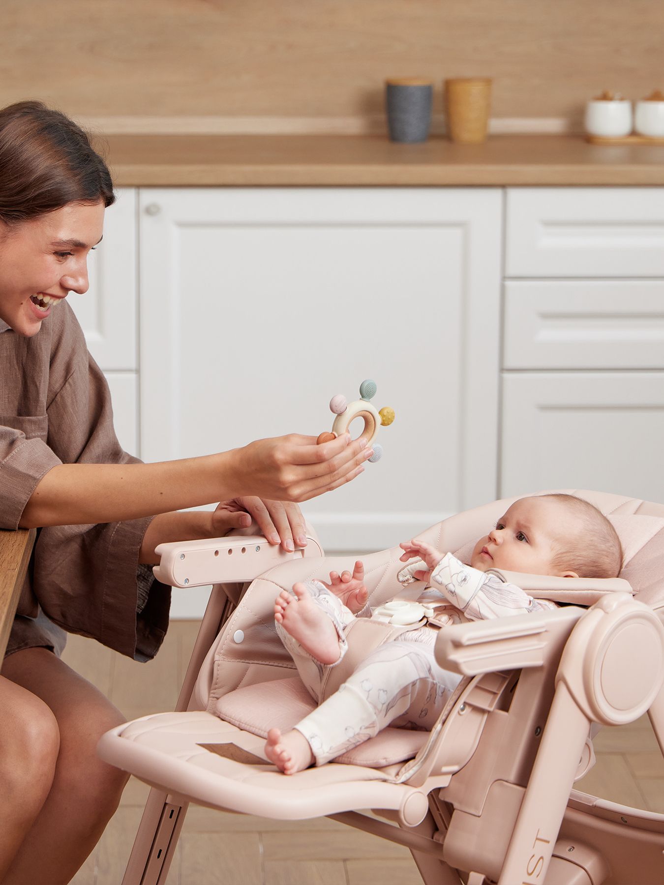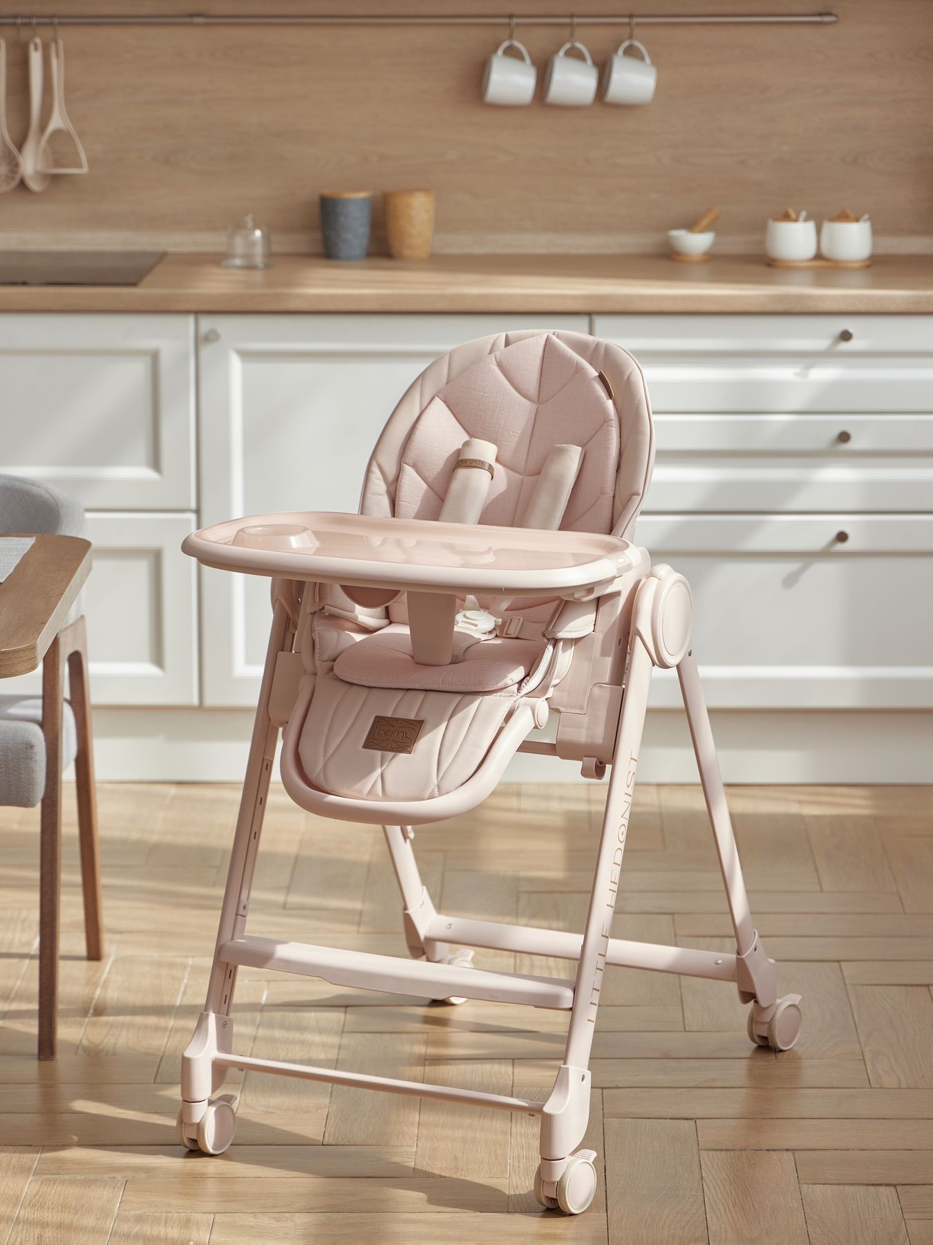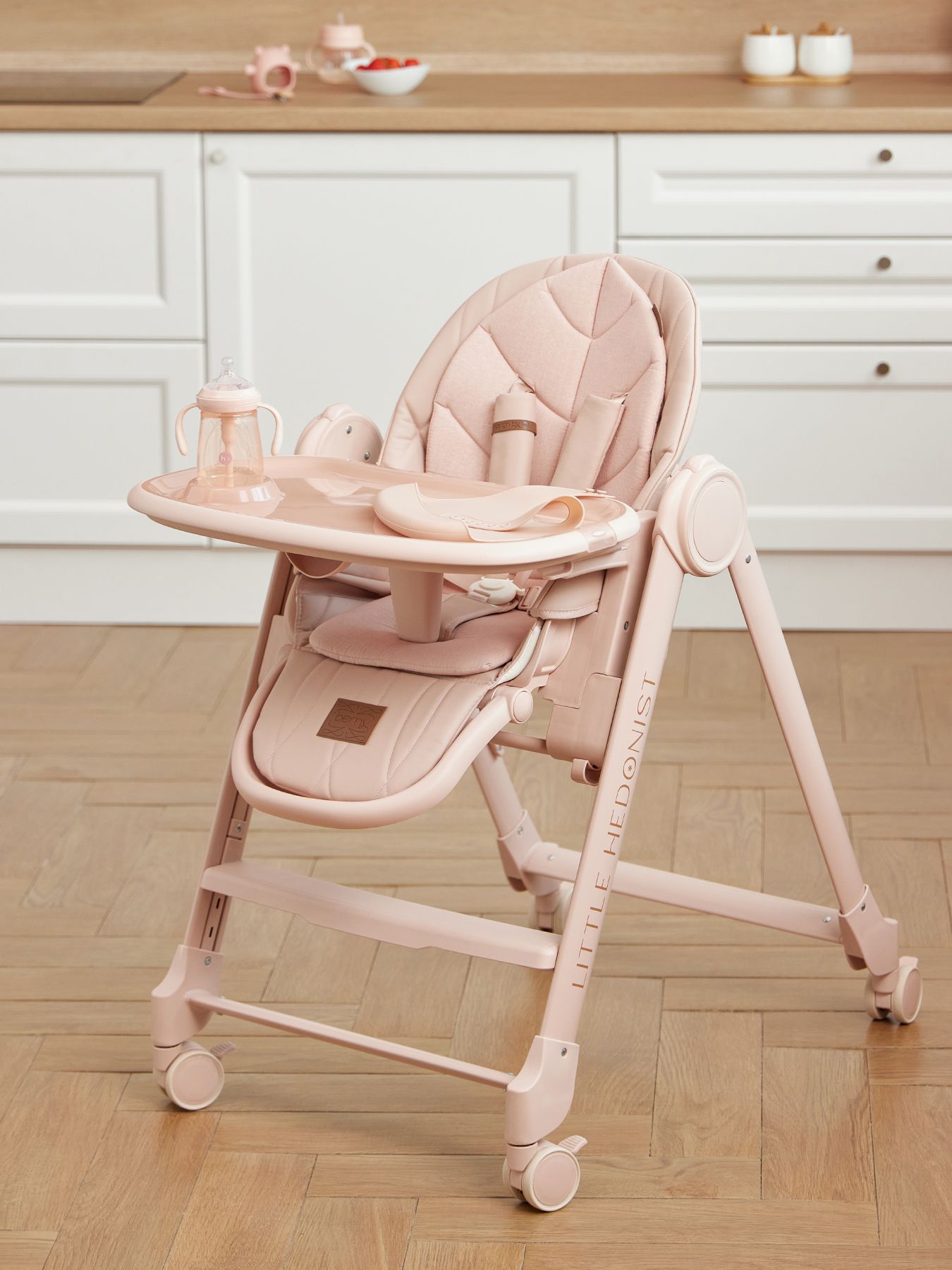 BERNY LUX is a continuation of the line of ideal high chairs from the BERNY series. Practical, comfortable, stylish and educational – it is adjustable for the height of the seat, footrest, steps and backrest tilt. Children will be comfortable in the “chaise lounge” position, and older children will climb into the chair themselves using a step. The solid metal frame without solders or sharp corners is safe and can withstand increased loads of up to 25 kg. The rear and front (for the updated version of BERNY LUX) swivel wheels provide mobility and are equipped with a brake mechanism, which adds stability to the chair. The eco-leather seat and soft cotton lining provide comfort for the baby. You can put toys or hygiene products in the pocket on the back of the back. BERNY LUX will fit into any interior – the laconic design of the frame and covers is made taking into account modern trends.