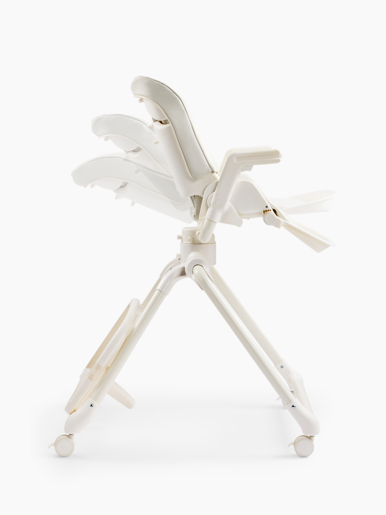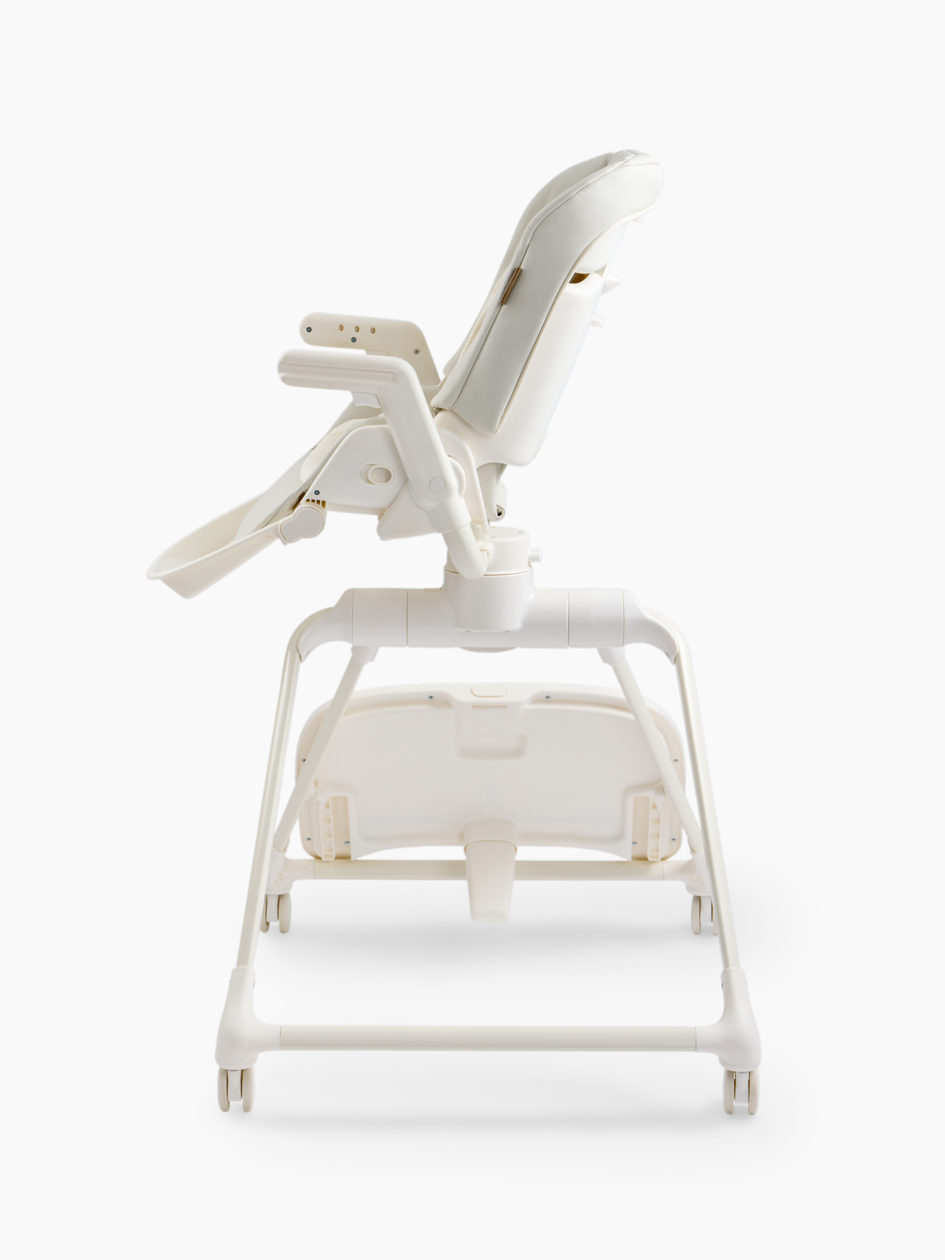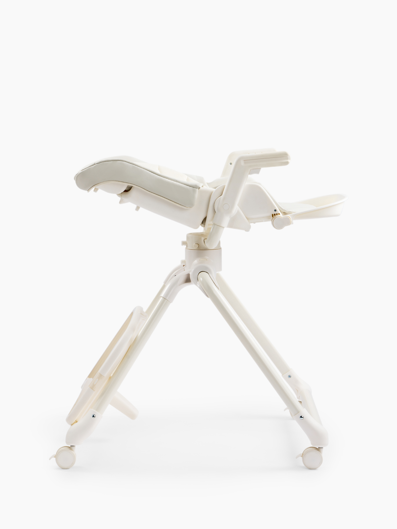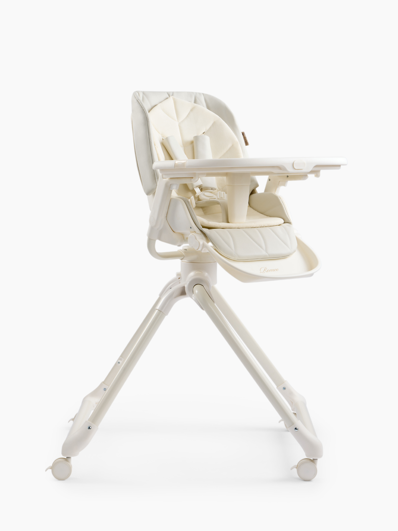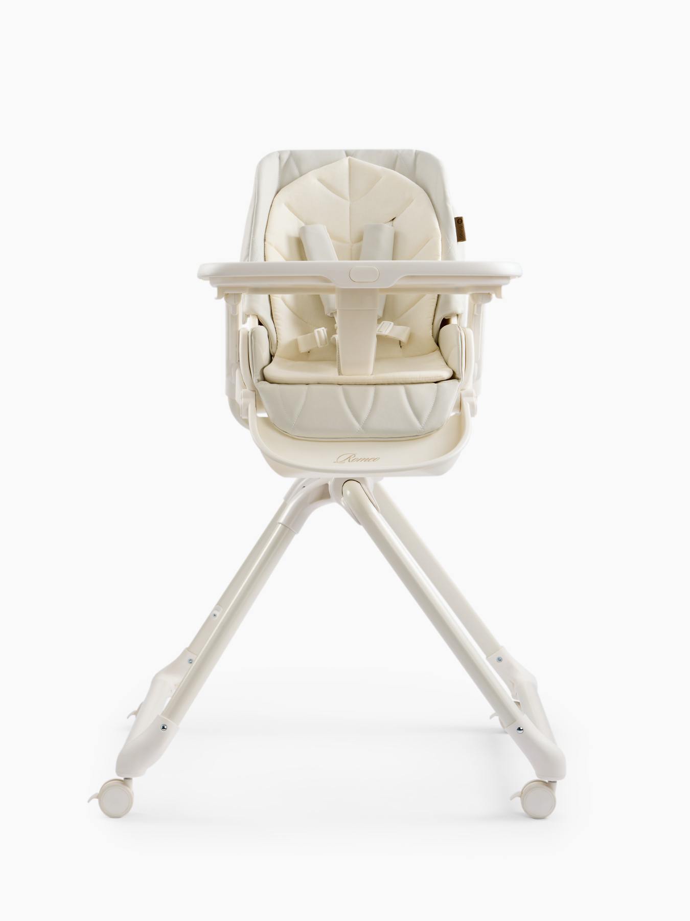 The ROMEO high chair is a comfortable and stylish baby feeding chair that can be used as a chaise lounge and as a growing set of furniture for children, thanks to 2 levels of backrest height. The feeding chair is suitable for boys and girls – the back has 3 angles of inclination, the footrest – 3. The 360° swivel seat allows you to easily change the position of the child – to the table or to the parent. The highchair has a removable table and tray, as well as a soft cotton mattress insert. The removable tray with table can be easily washed after meals. The table can be removed in one motion and is compactly attached to the rear legs. The ROMEO children’s feeding chair folds easily and is compact for storage.
