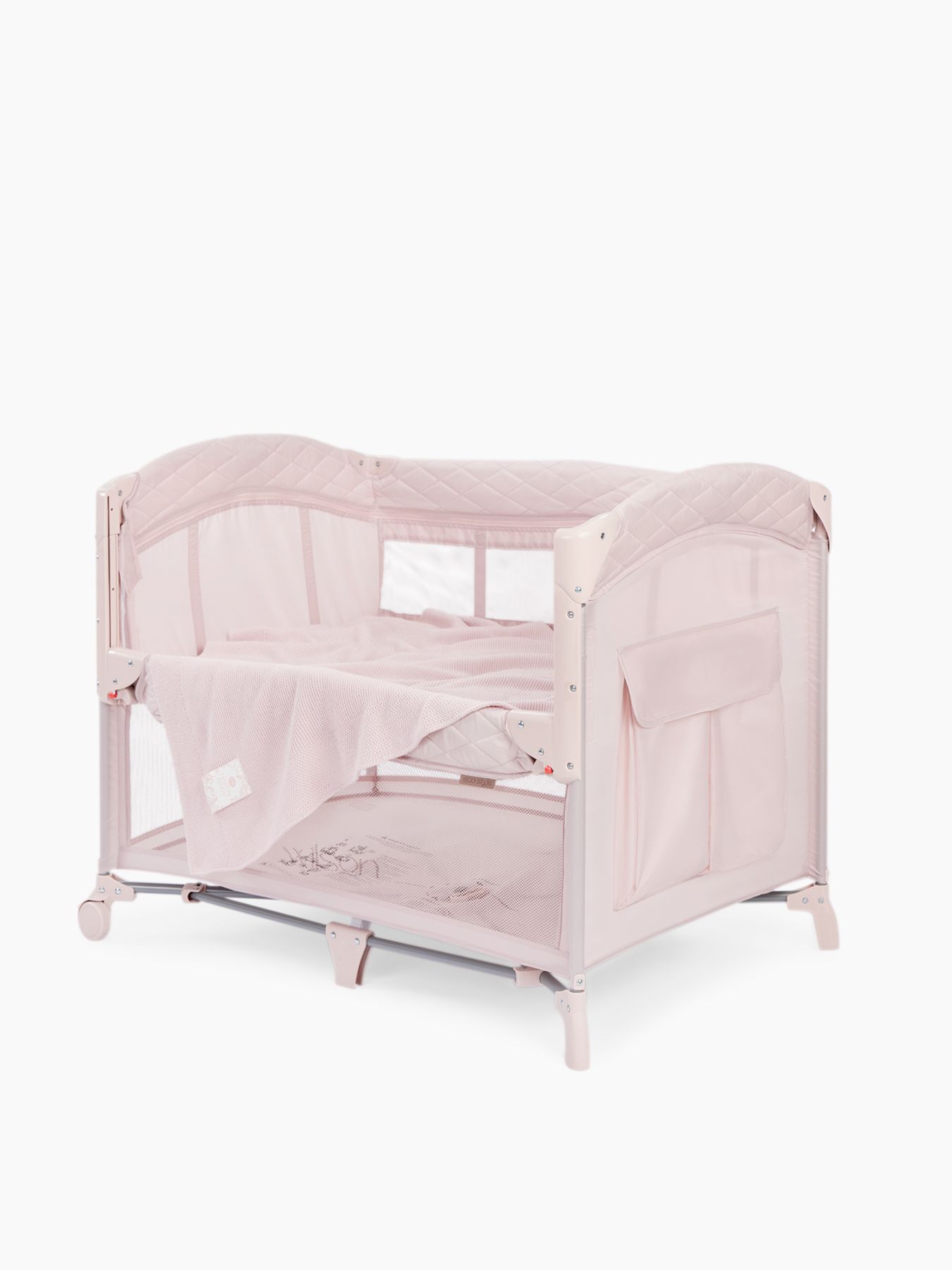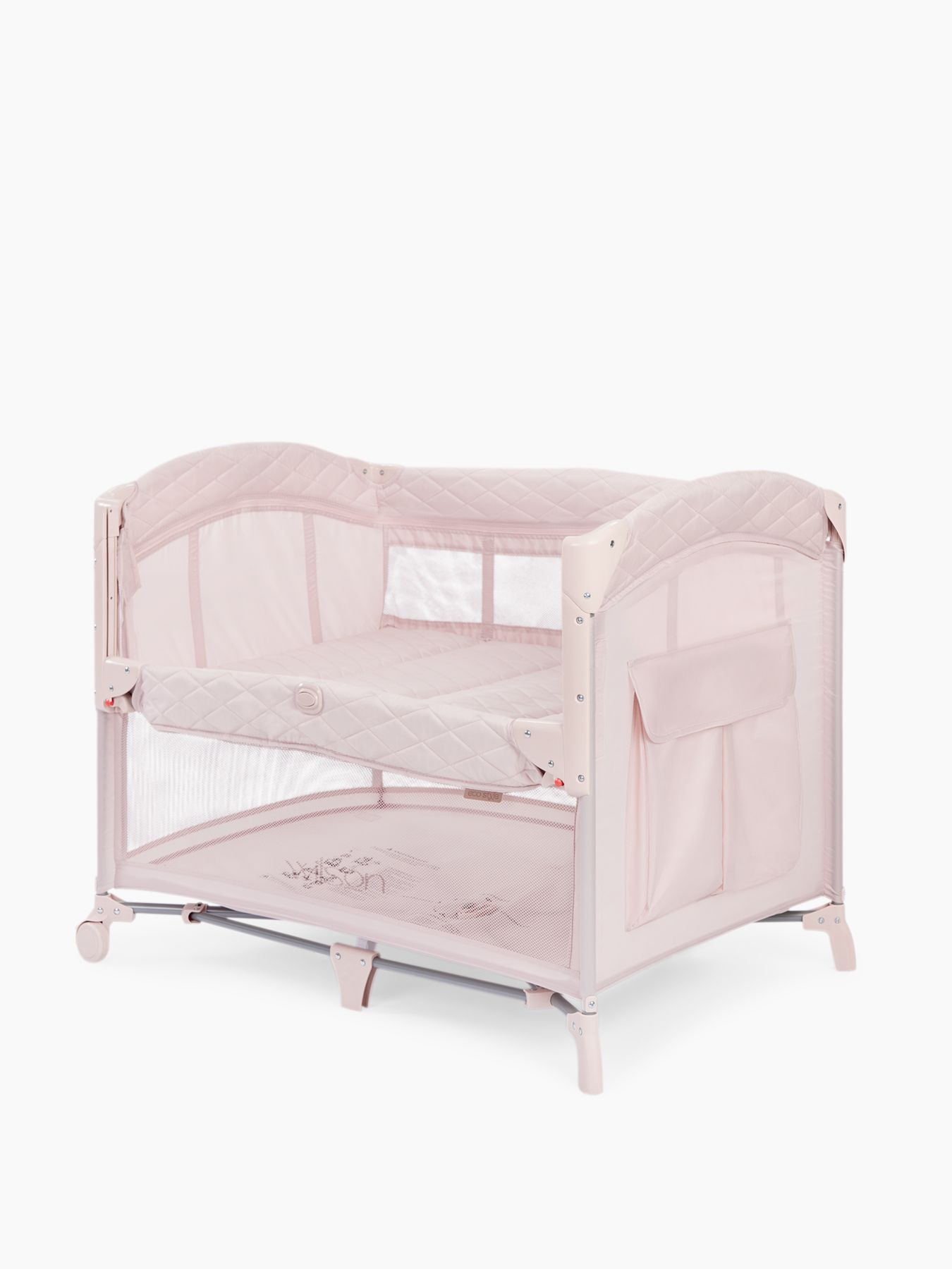 The playpen is decorated with fabulous ornaments and makes games in it especially exciting. Low weight, compact size when unfolded and minimal when folded make the playpen ideal for travel, as well as apartments with a small area. The playpen easily turns into a comfortable crib. The wall of the playpen lowers halfway and allows you to install it next to the parents’ bed for a restful sleep for the baby and mother. Wheels help you move the cot around the house. For safety, there are no sharp corners, and the upper part is soft, made from easy-care and water-resistant Oxford fabric. With the playpen, the baby will feel at home and safe everywhere, and the unique design will be an excellent addition to any interior.