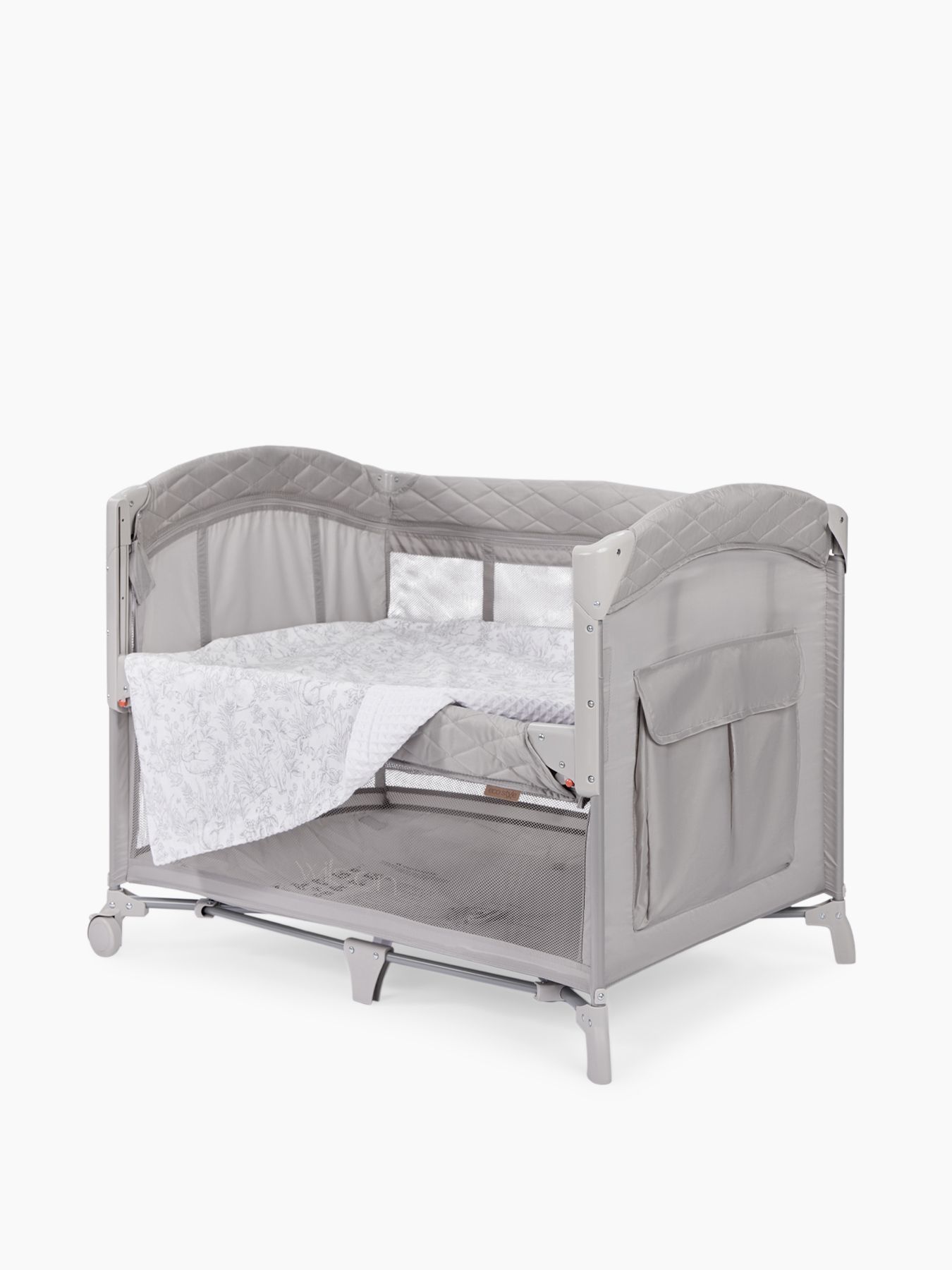 The playpen is decorated with fabulous ornaments and makes games in it especially exciting. Low weight, compact size when unfolded and minimal when folded make the playpen ideal for travel, as well as apartments with a small area. The playpen easily turns into a comfortable crib. The wall of the playpen lowers halfway and allows you to install it next to the parents’ bed for a restful sleep for the baby and mother. Wheels help you move the cot around the house. For safety, there are no sharp corners, and the upper part is soft, made from easy-care and water-resistant Oxford fabric. With the playpen, the baby will feel at home and safe everywhere, and the unique design will be an excellent addition to any interior.