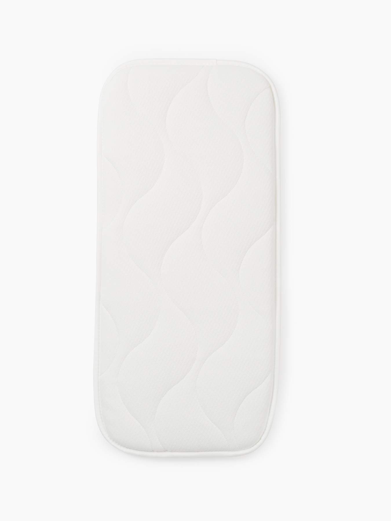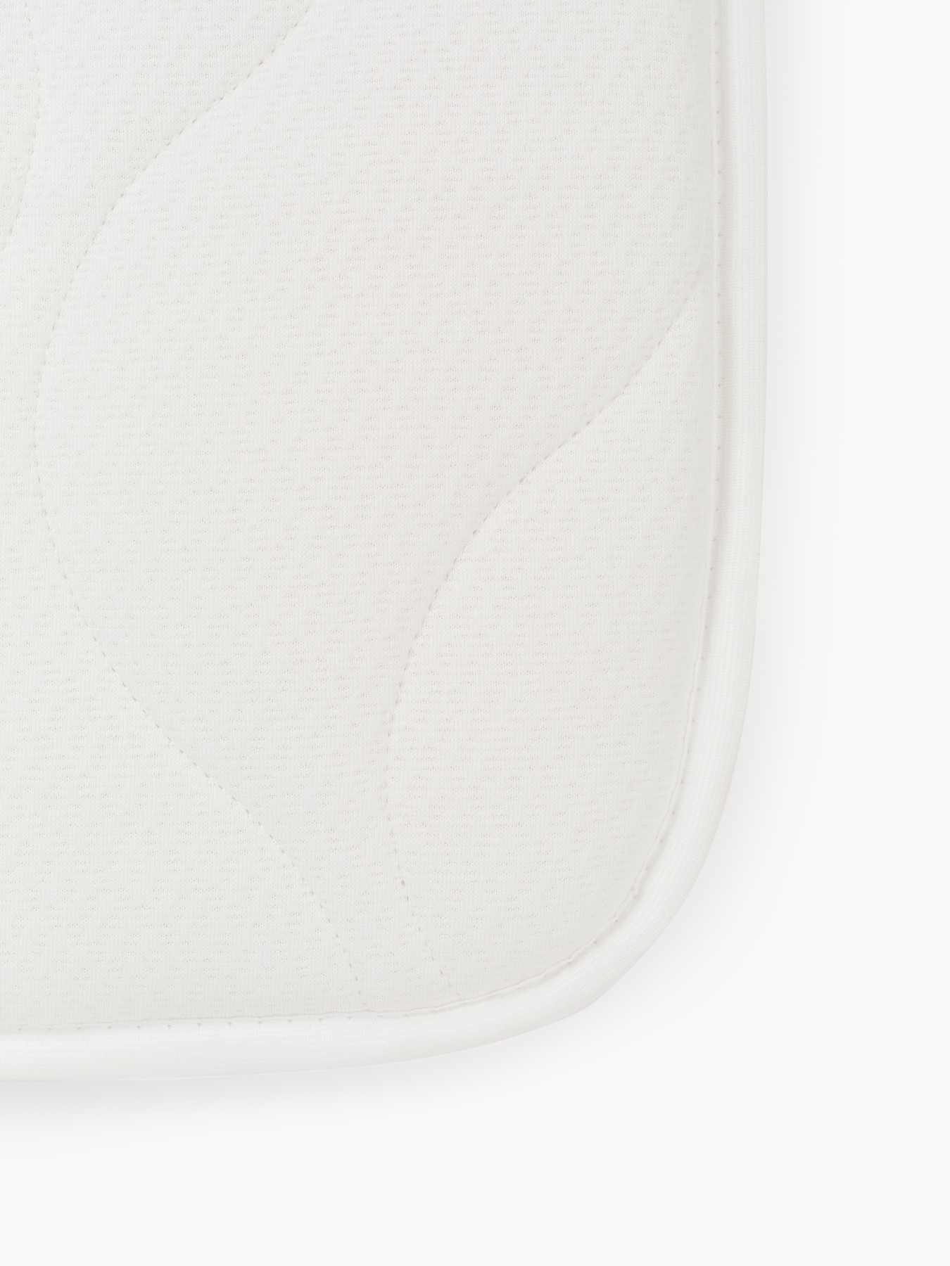 The stroller mattress from Happy Baby has an excellent shock-absorbing effect, so your baby will not feel any discomfort while walking. The mattress filler consists of high-density holofiber – a material with a unique structure of polyester fibers arranged in the form of vertical springs. The cover with piping, on one side, is made of quilted jersey, giving it additional volume and softness. The other side of the cover is made of 3D mesh: the unique material helps the filler “breathe”, providing excellent air and moisture exchange.