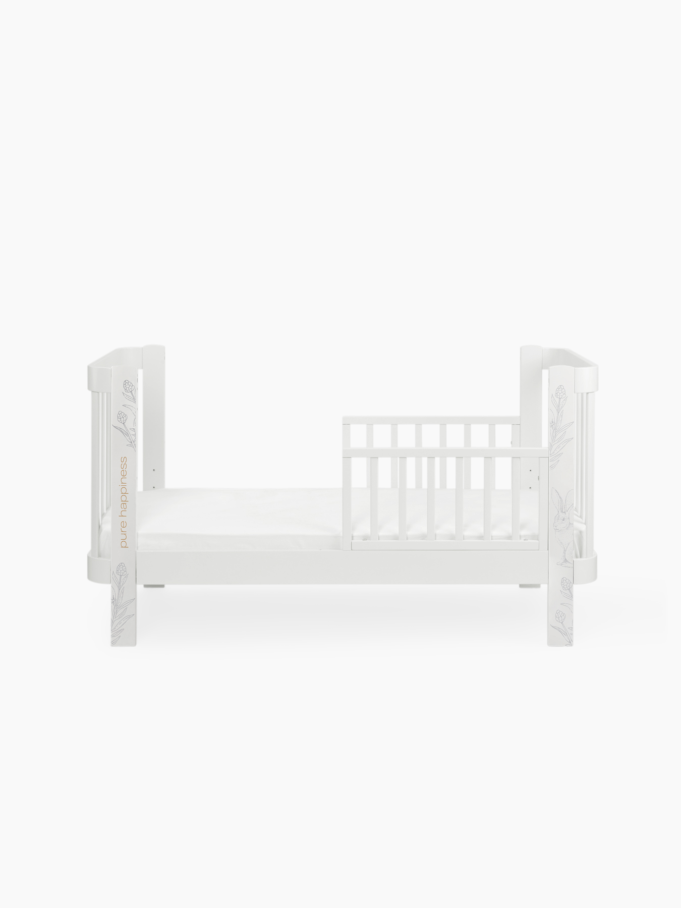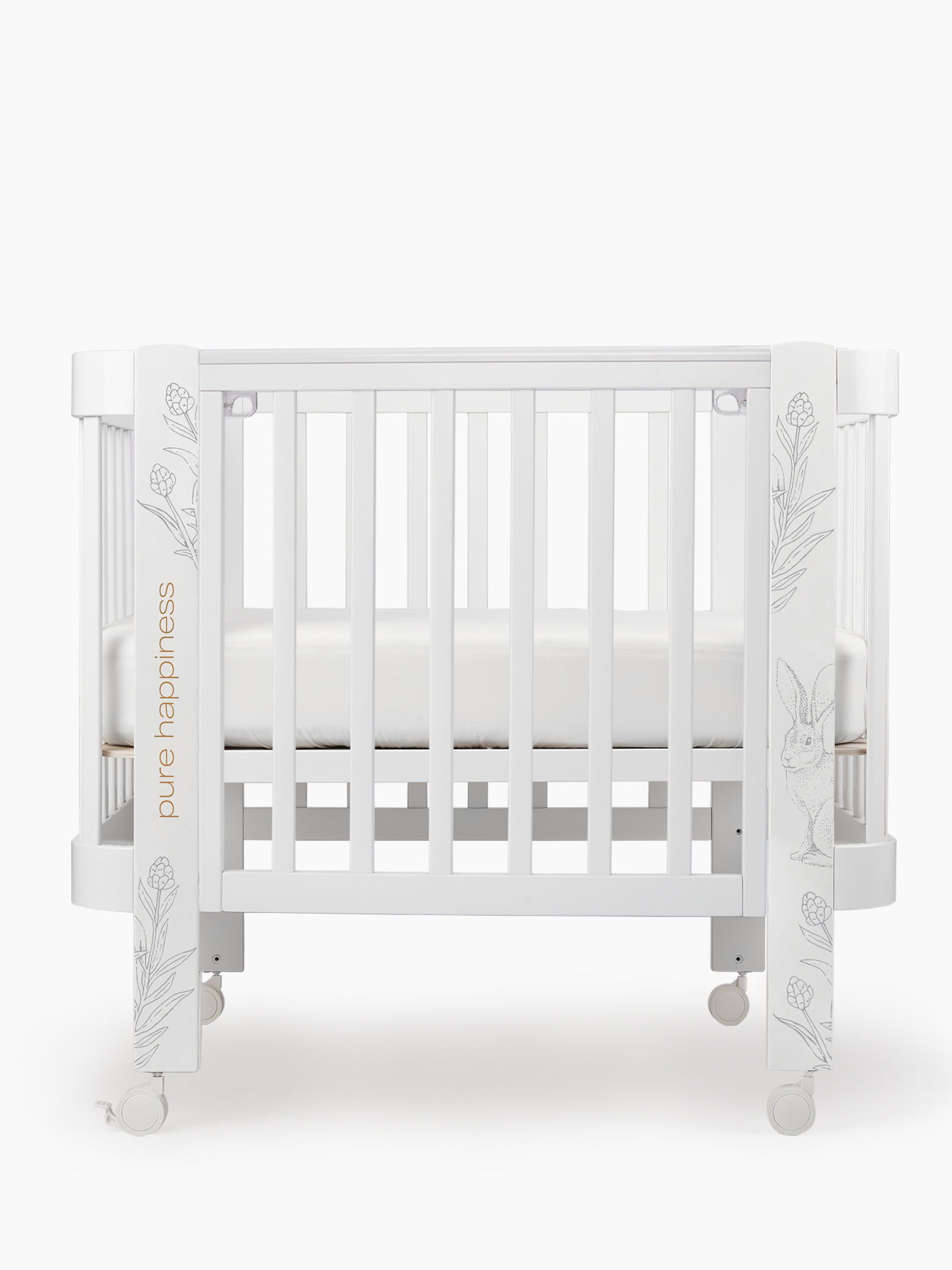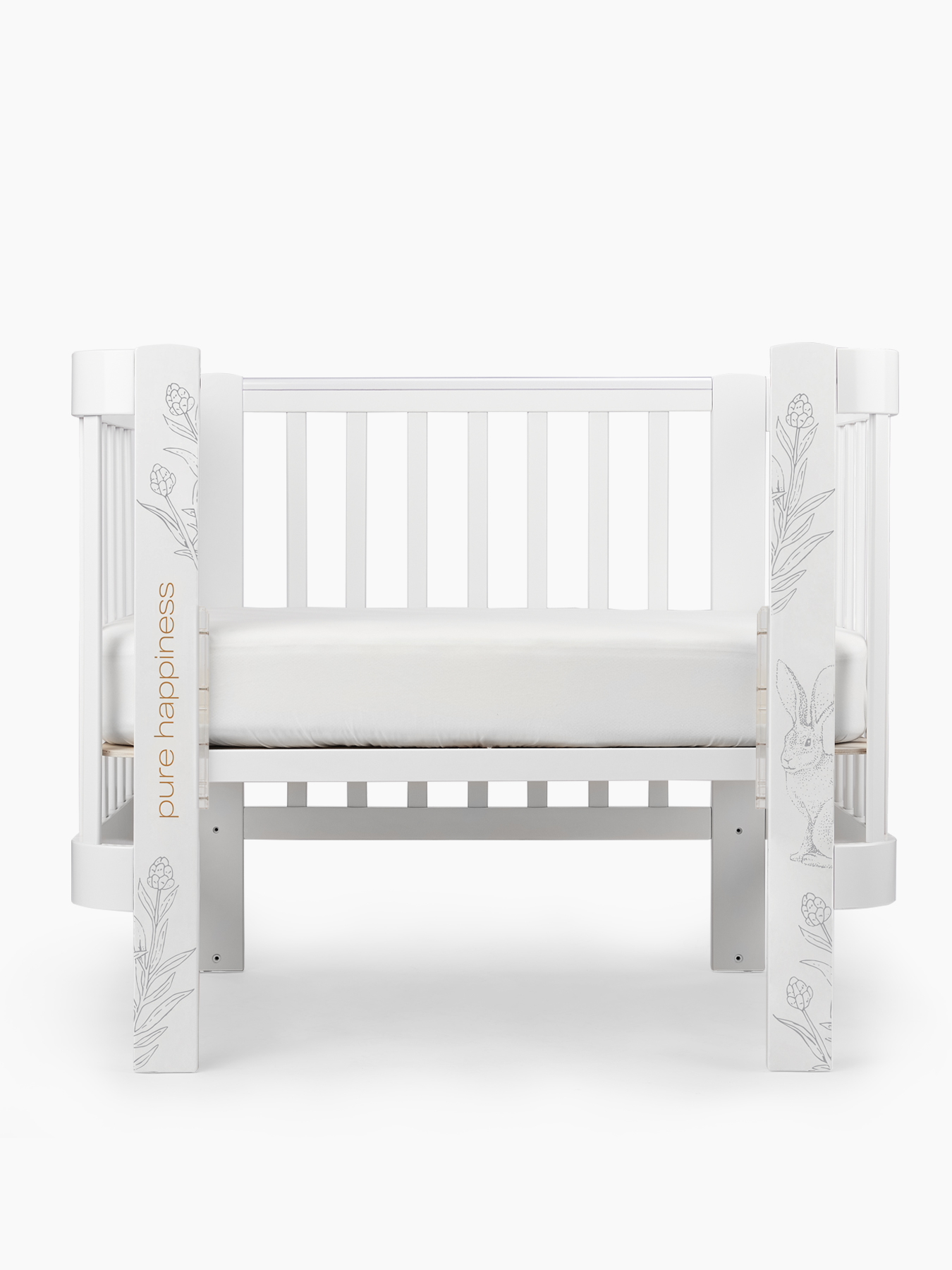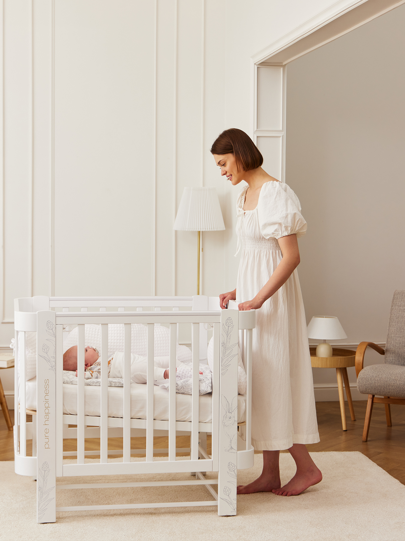 The set of 8 items includes: • MOMMY LOVE transformable bed • Fitted sheet 100×70 2 pcs. • Children’s mattress cover 100×70 cm • Children’s blanket • Mattress for the MOMMY LOVE cradle-crib 100×70 cm • Bed linen set (duvet cover and pillowcase) • Set of crib bumpers 3 pcs • Cocoon pillow for a newborn Transformable crib MOMMY LOVE Article: 95026 Quantity in set: 1 Color: white Age: 0+ Composition: natural wood, furniture plywood, plastic The MOMMY LOVE™ children’s transforming bed is a practical and functional solution for growing families. Combining coziness and convenience, it is ideal for your baby from birth. The bed comes with a soft bassinet support and an expansion kit that allows you to adapt the bed to your growing baby’s needs. The process of disassembling and installing the expansion kit is as simple and intuitive as possible. The parts are easy to insert, turning the bassinet into a full-size baby bed. This convenience makes MOMMY LOVE™ an excellent choice for families who value practicality and ease of use. Crafted using high quality materials, the bed provides durability and style. Modern design and easy care make MOMMY LOVE™ the perfect place for your baby to relax and a convenient choice for you.