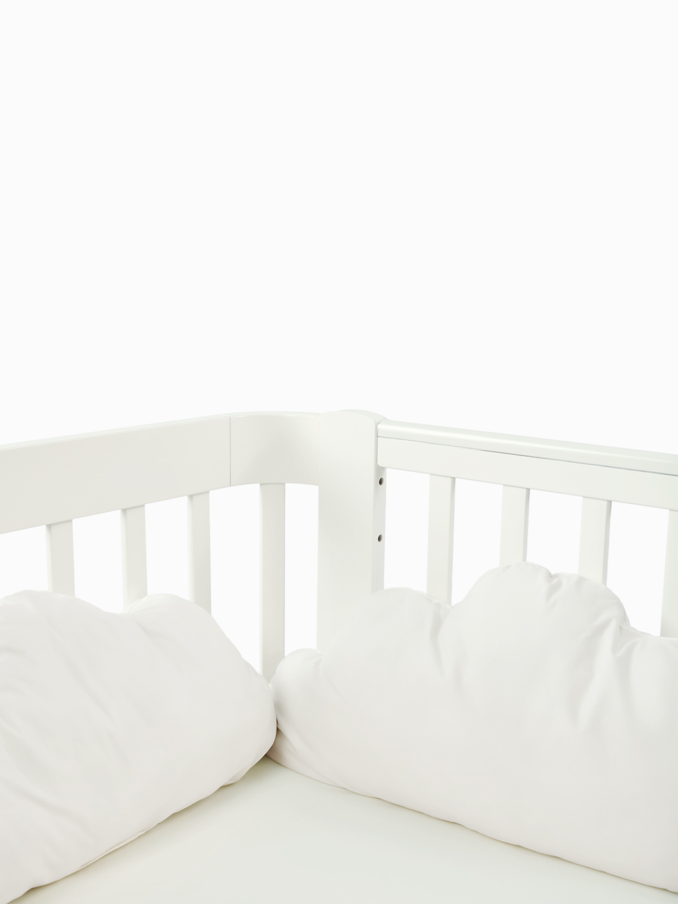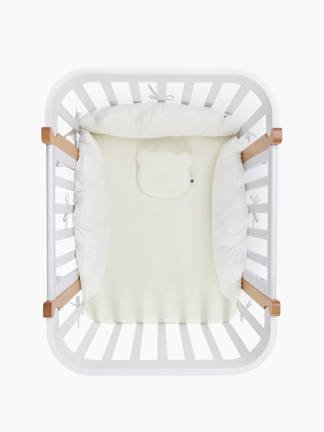 This newborn crib set will give your baby comfort and softness. The set includes everything you need for a comfortable and restful sleep: 3 crib bumpers, 2 fitted sheets 100×70 cm, a pillow 26×22 cm and 2 mattress covers 100×70 cm. Thanks to the universal colors, the set is suitable for boys and girls.