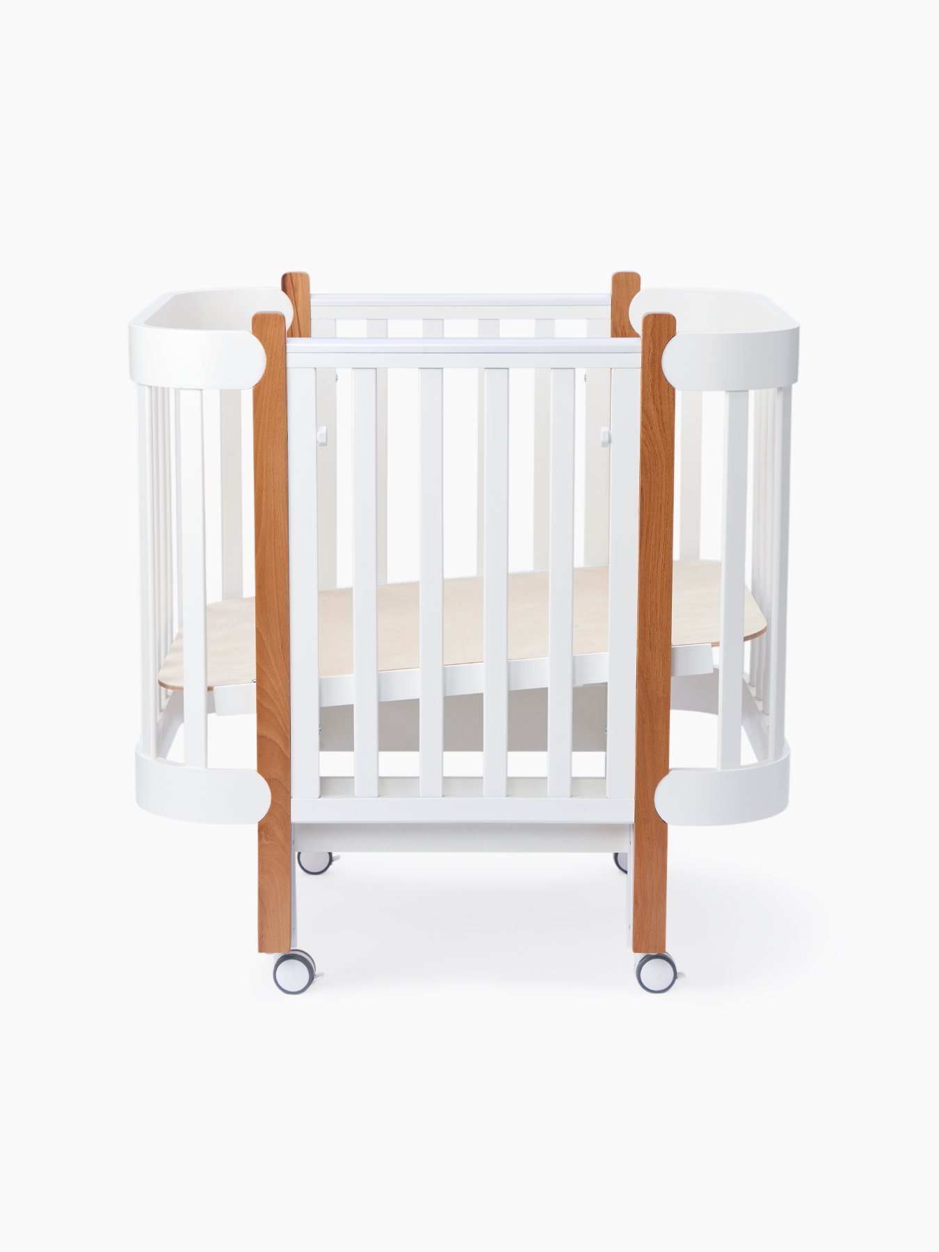 The set of 7 items includes: • MOMMY LUX transformable crib • Mattress for the cradle-crib “MOMMY LUX” 90x70cm • 2 pcs fitted sheet 100×70 cm • Children’s mattress pad 100×70 cm • Children’s pillow • Children’s blanket • Bed linen set (duvet cover and pillowcase) • Set of bumpers for a crib, 3 pcs Transformable bed MOMMY LUX Article: MOMMY LUX Quantity in set: 1 pc. Color: white Age: from 0 to 7 years Composition: natural wood (beech), plastic The pendulum for the cradle provides the baby with the sweetest sleep, simulating natural rocking as in the arms of a mother. The pendulum can be used in the “cradle” position and in the “crib” position – an extension is also provided for the pendulum. Thanks to this, the baby falls asleep faster and sleeps more soundly compared to a regular crib. The kit includes clamps that prevent spontaneous rocking when the baby turns over in his sleep or wakes up after a sound sleep. The expansion kit allows you to expand the bassinet to a full-size crib. The sides are equipped with polypropylene pads to protect the baby and the crib during teething.