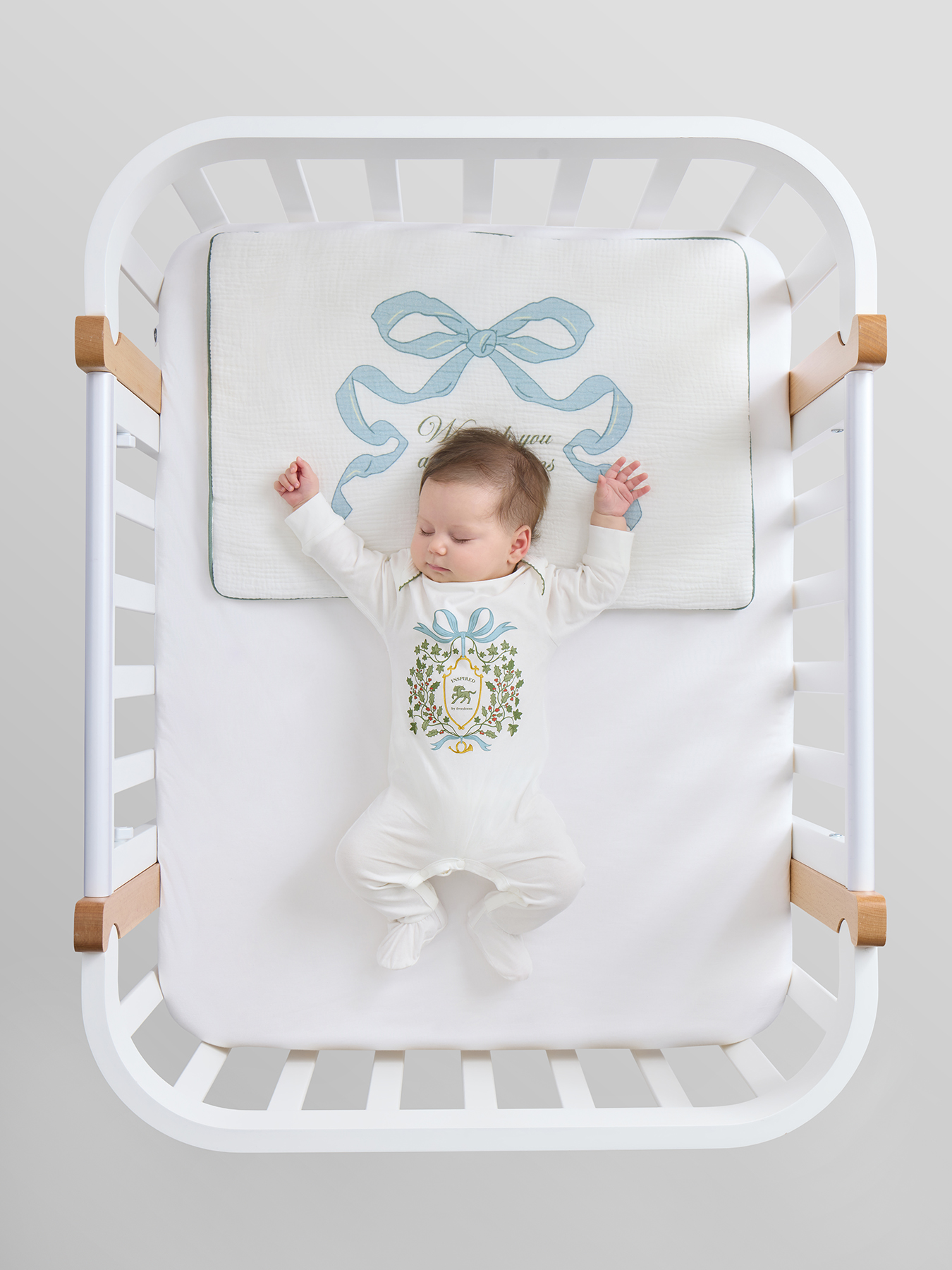 A baby set for a newborn consisting of a blanket and a pillow creates comfortable sleeping conditions. This kit is suitable for use from the first days of life both at home and while traveling.