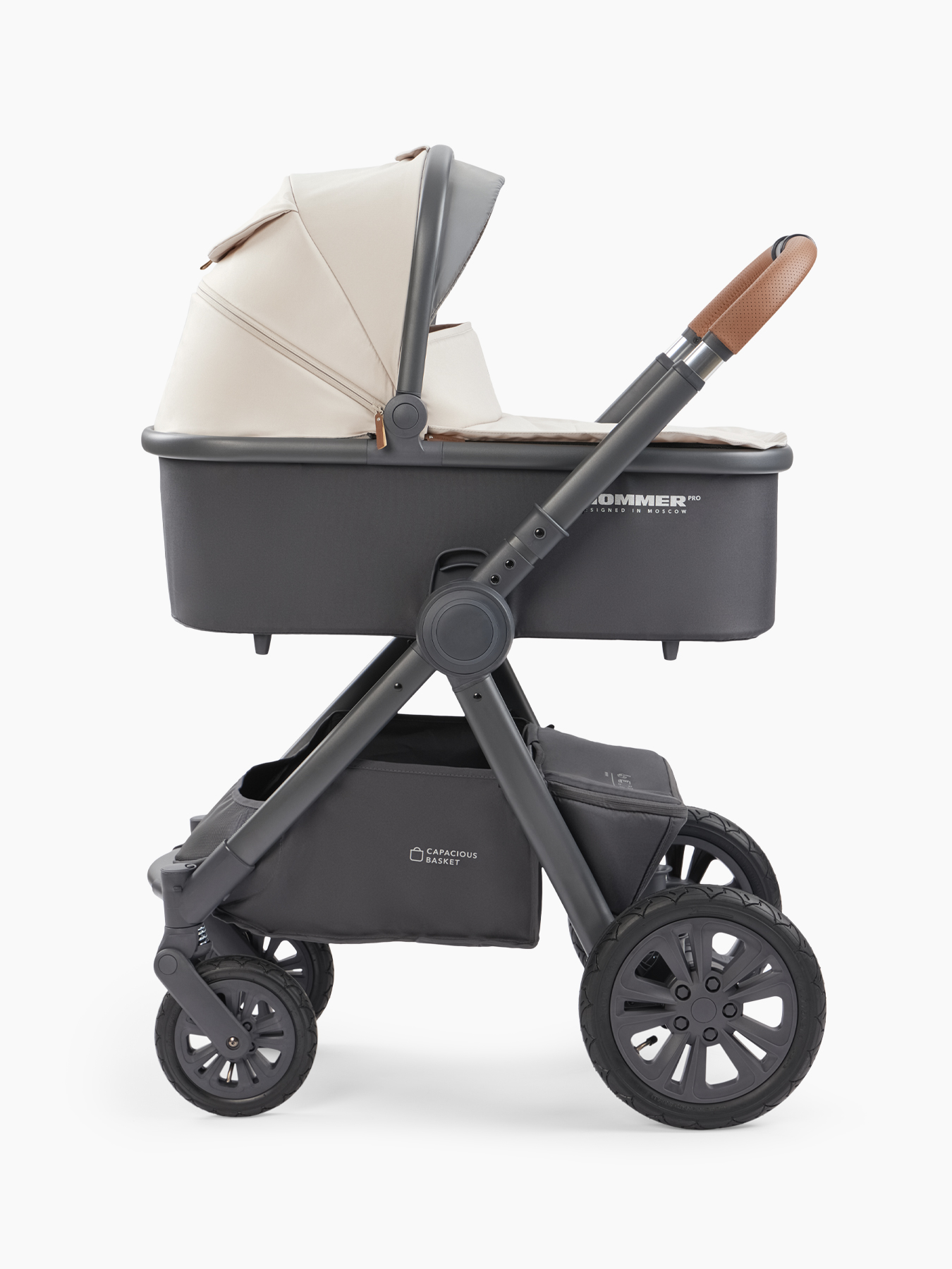 MOMMER PRO is a 2 in 1 stroller for children from birth, equipped with a spacious cradle and a comfortable seat block. The cradle block for newborns is equipped with a convenient carrying handle. A large hood will protect you from the sun, and a viewing window will help you keep an eye on your child. The walking block is equipped with a hood up to the bumper. A bumper with a leg divider and five-point harnesses with soft pads securely secure the baby in the stroller. The angle of the block, the position of the backrest and footrest can be adjusted. The walking block is installed facing the parents or in the direction of travel. Walking with MOMMER PRO is convenient for both mom and dad – the telescopic handle can be adjusted to the desired length. Shock absorption on the rear and front wheels will provide comfort even on off-road conditions. Reliable rear wheels with rubber tires and EVA foam filling do not need to be pumped up. A large basket will accommodate purchases and everything you need for walking. With MOMMER PRO, the baby’s comfort and safety are under control.