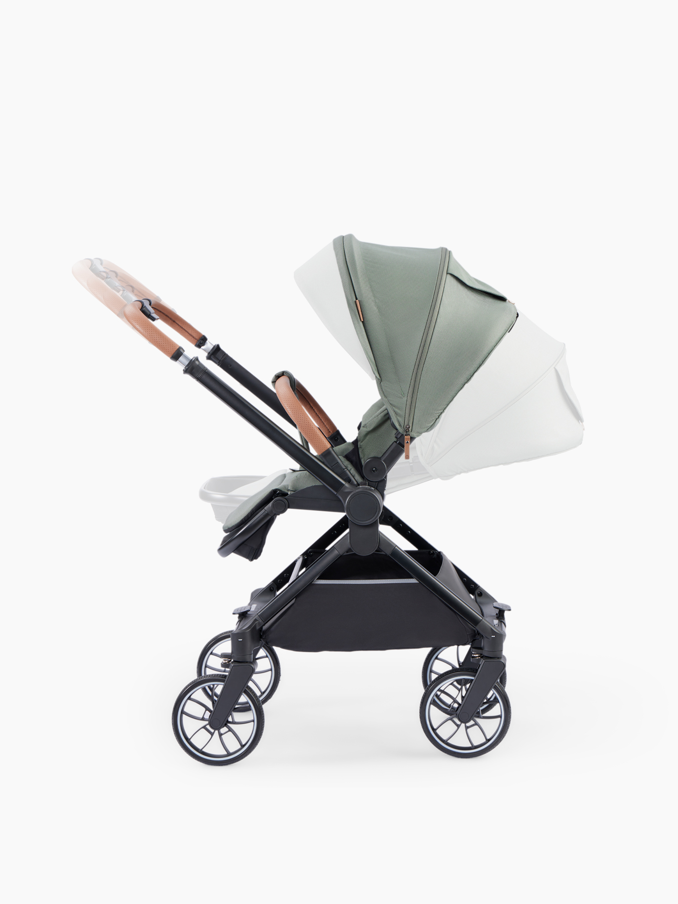 Discover a world of comfort and style with the CELINE stroller! It’s the perfect combination of elegant design and convenient features, designed to make walking with your little one truly enjoyable. With one-handed control, you can easily maneuver through city streets, and the removable unit with the ability to change positions ensures maximum comfort for your baby in any situation. The reversible and retractable handlebars with height adjustment give you the freedom of choice and adaptation to any walking conditions. The eco-leather finish gives the stroller a luxurious look. A removable bumper with leg divider, magnetic buckle on the five-point harness and an adjustable reclining footrest ensure that your little one is completely safe and comfortable. The shock-absorbing wheels provide a smooth ride, while the large bumper-to-bumper hood, viewing window and shopping basket make for a comfortable ride. For your peace of mind, the kit includes a rain cover, a cover for the legs and a mosquito net.