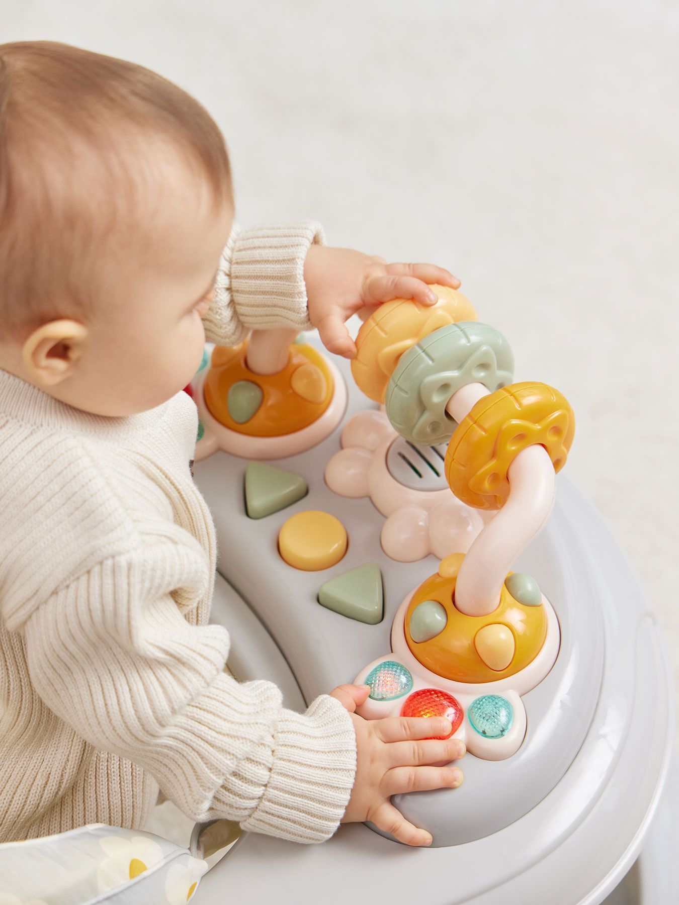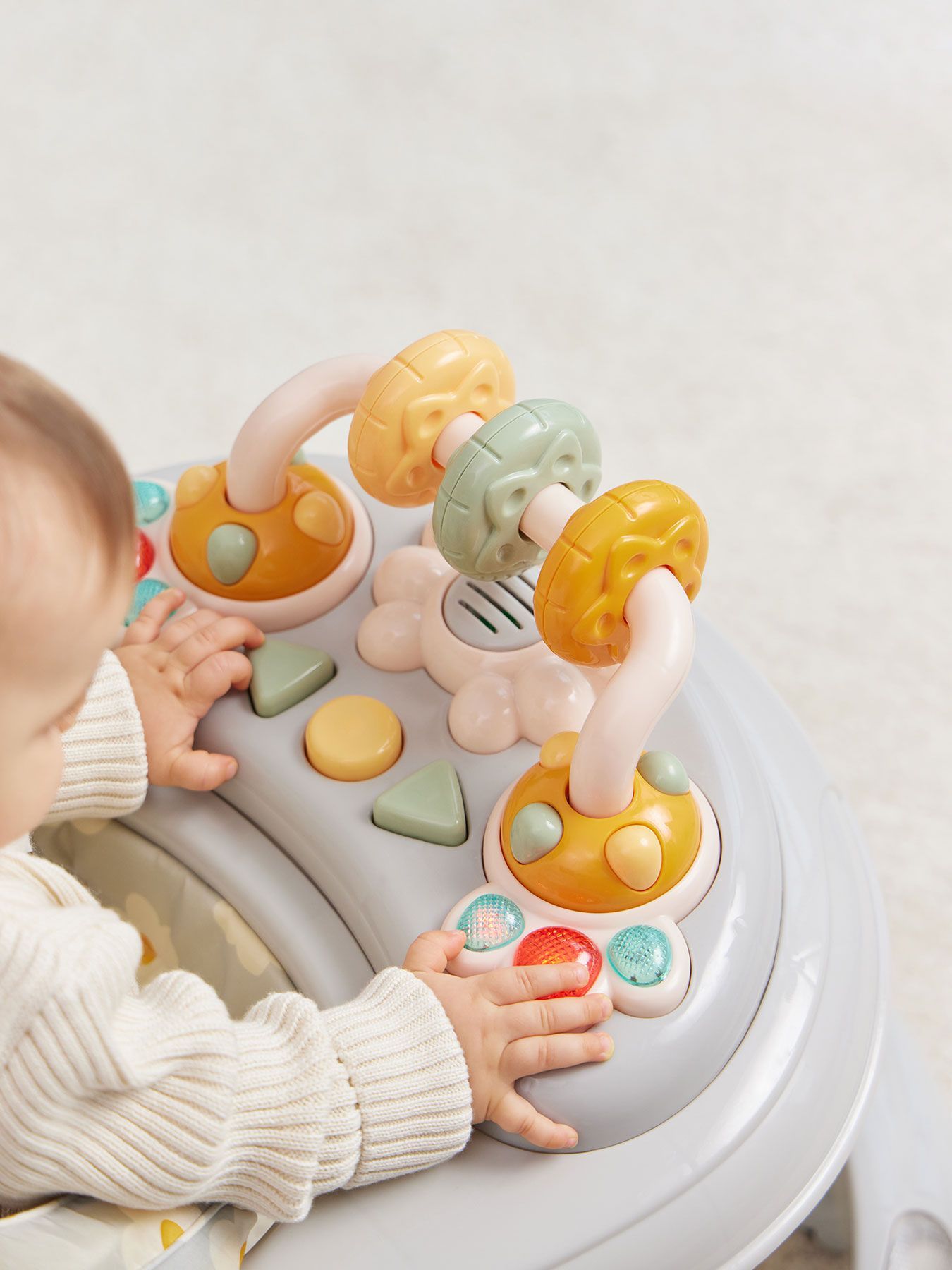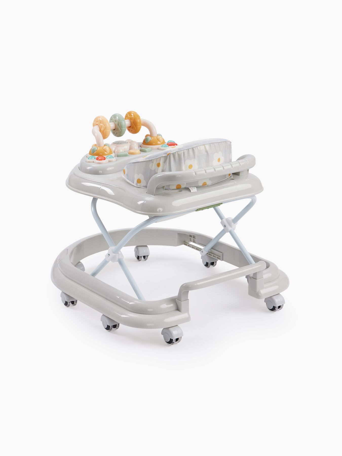 Classic walkers SMILEY V2 develop coordination of movements and will help the child learn to maintain balance. The soft colors of the walker will attract the baby’s attention. A play panel with sound effects and toys will help develop your baby’s vision, hearing, grasping reflex and fine motor skills. The soft, comfortable seat is easily adjustable in 3 positions depending on height. SMILEY V2 walkers are equipped with special silicone wheels that will not scratch the floor covering. The game panel runs on 2 AA batteries.