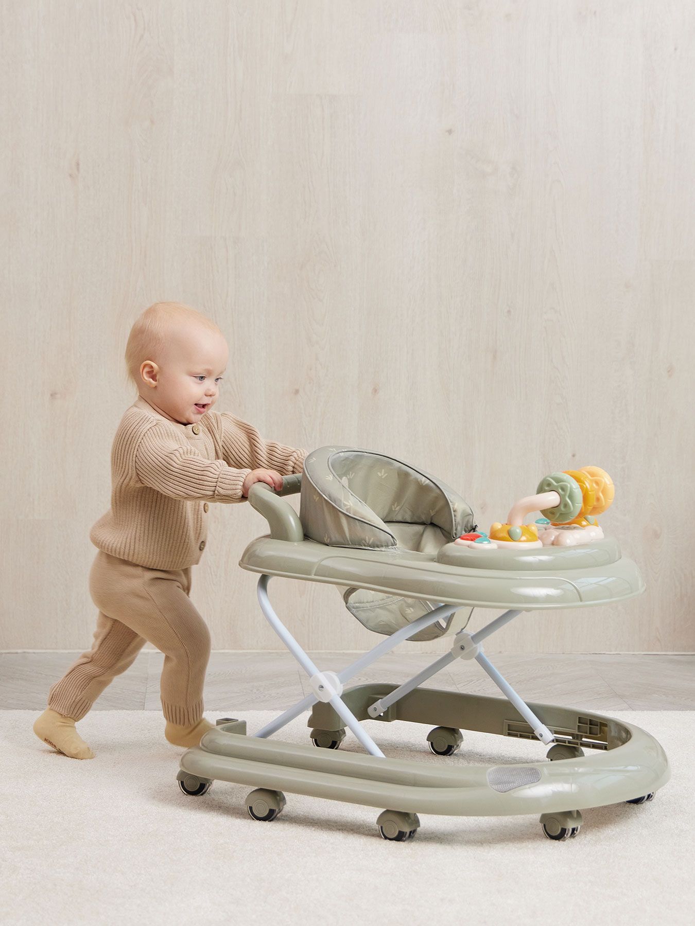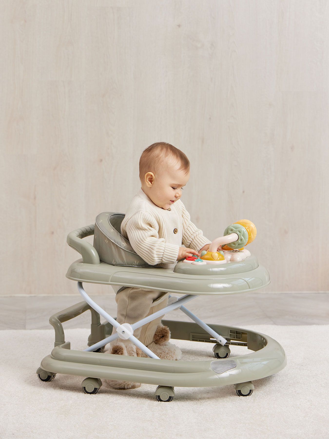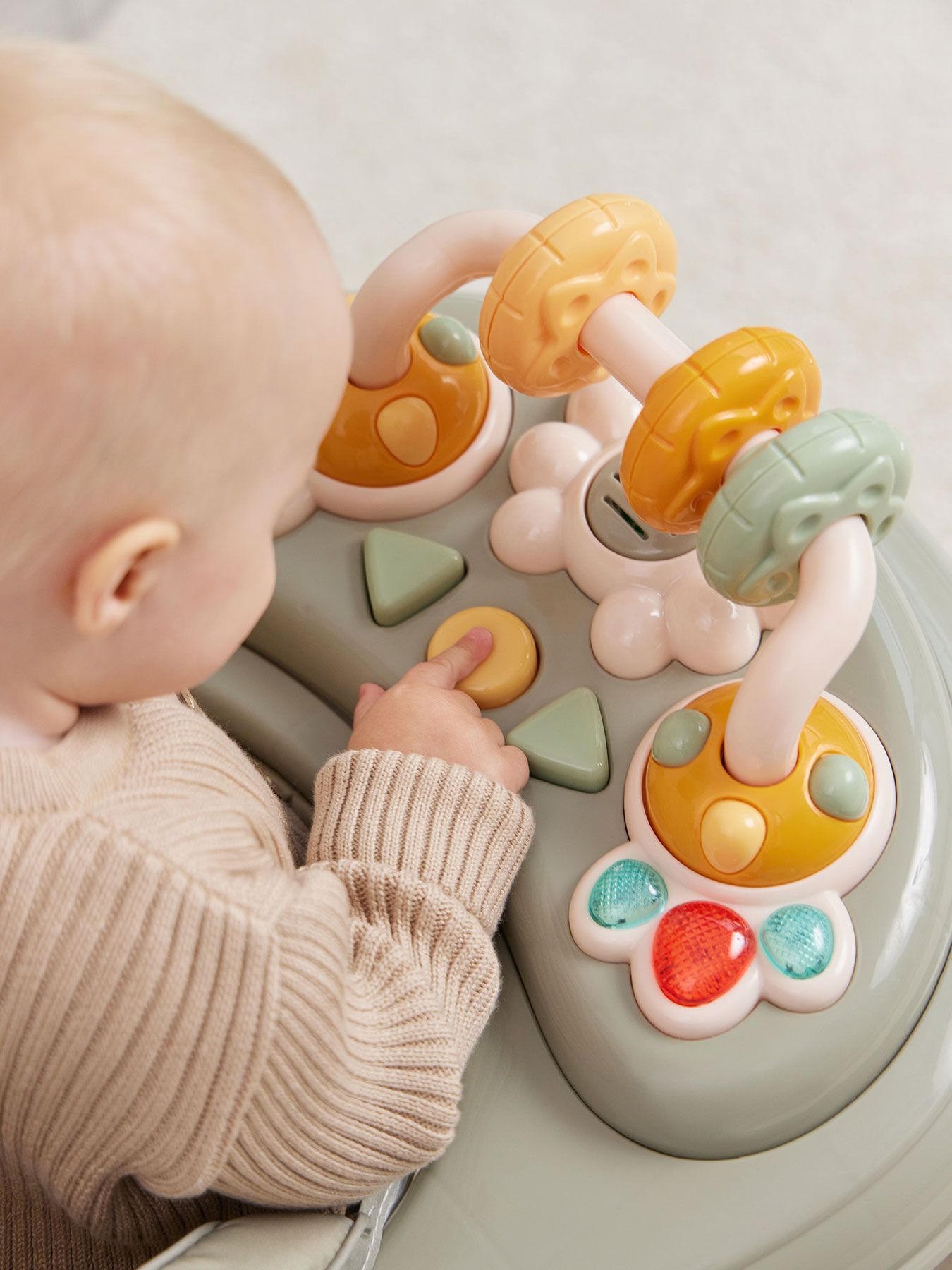 Classic walkers SMILEY V2 develop coordination of movements and will help the child learn to maintain balance. The soft colors of the walker will attract the baby’s attention. A play panel with sound effects and toys will help develop your baby’s vision, hearing, grasping reflex and fine motor skills. The soft, comfortable seat is easily adjustable in 3 positions depending on height. SMILEY V2 walkers are equipped with special silicone wheels that will not scratch the floor covering. The game panel runs on 2 AA batteries.